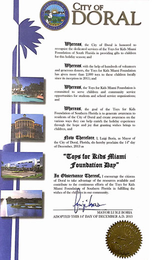 For that and many more reasons, our mission has been recognized by The City of Doral since 2011.